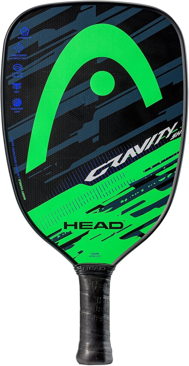 The Gravity Large (LH) and Short Handle (SH) feature all of the same benefits as the current Gravity model. The LH has a longer handle for two handed backhand and forehand players. The SH provides a larger hitting surface for a larger sweetspot and even more power and is ideal for players who hold higher on the grip. Both models provide a massive sweetspot shape which combines the great power you want with the soft impact feel you need. These models combine HEAD's latest technologies that work together for an ultimate paddle experience. The Hybrid Hitting Surface provides a truly superior blend of power, comfort, control and stability, while its HEAD's Foamed Core takes care of the unique soft and powerful impact feel. With its addition of the SpinOn technology the Gravity paddle has massive spin potential as well.