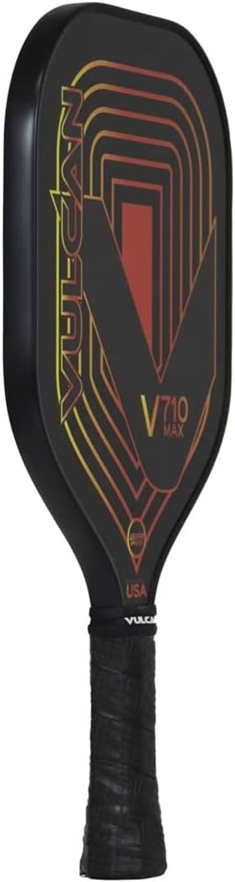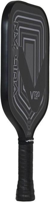 The Vulcan V720MAX Pickleball Paddle is a powerful paddle designed for players who hit drives and smashes with maximum pace and depth, yet with its larger surface area and sweet spot it is also the most forgiving paddle around the net. It gives players the confidence that comes with maximum power in their shots, yet provides extraordinary feel for control in the soft game, through engineering advancements in material selections like the use of TeXtreme™ which is by far the world’s most expensive, highest-quality carbon fiber. More intelligent paddle weight balancing is a new innovation that gives the V700s higher mass for power, yet the swing weight is noticeably lower than the actual weight. Breakthroughs in both materials’ science, shape and design, and manufacturing techniques represent a brand new opportunity for players to play their best – while enjoying the fact that the Vulcan V700 Series paddles are each individually handcrafted in the USA.