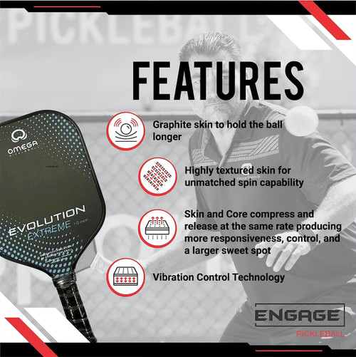 The Evolution Extreme X brings to the Pickleball scene a new T700 Carbon Fiber paddle built for the control and spin enthusiast.