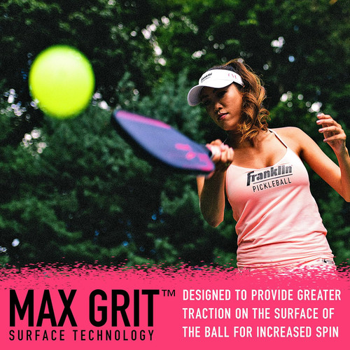 Franklin Sports is raising the bar for Pickleball paddles everywhere with the introduction of the all new Christine McGrath Signature Pickleball Paddle. The premium quality paddle features our brand new MaxGrit™ textured surface technology designed for maximum spin and reduced vibration. The MaxGrit™ surface material is USAPA approved and is designed to provide greater traction on the surface of the ball to increase spin rate for optimal control. Additionally, the polypropylene core and fiberglass surface layer ensure a strong, durable base with an oversized sweet spot for dependable, effortless contact shot after shot. This paddle is the new pinnacle of performance and is USA Pickleball certified for competitive and tournament play.